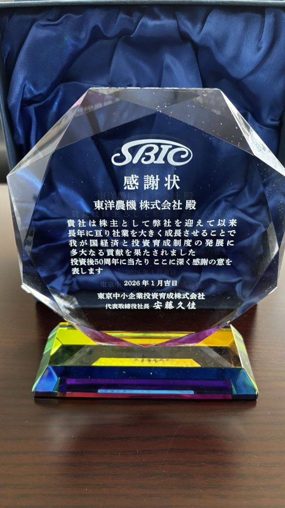 これまでの弊社の発展において、農業に携わるお客様はもとより、東京中小企業投資育成株式会社 様のご指導があってのものと